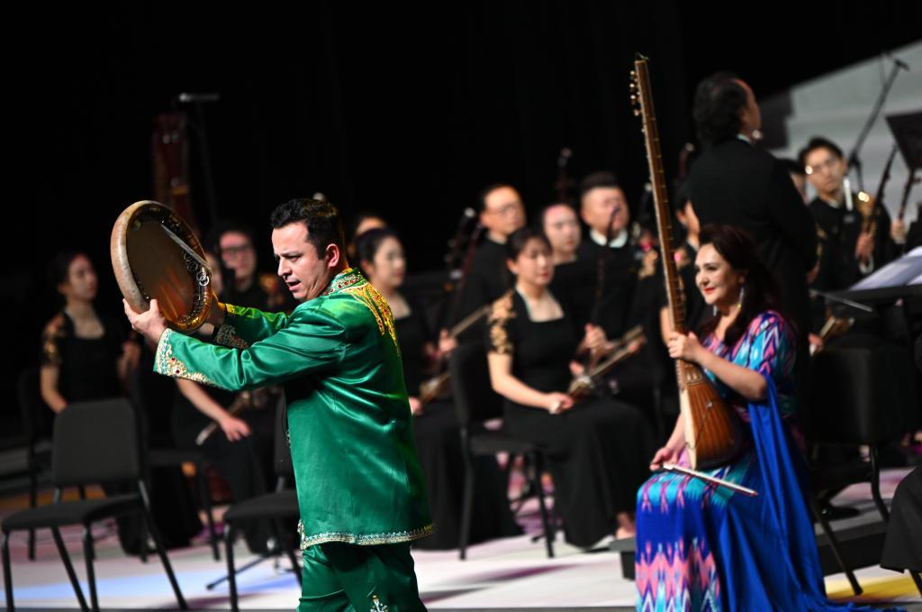 11月9日,经典歌剧《图兰朵》在陕西大剧院上演,为第十一届丝绸之路国际艺术节画上圆满句号。本届艺术节历时25天,吸引了80多个国家和地区的参与。中外艺术家共演出34部剧目、46场演出,涵盖交响音乐会、歌剧、舞剧、话剧、秦剧、昆剧等艺术形式。活动现场吸引了约8万名观众,让艺术为丝路文明交流互鉴搭建起桥梁。 10月16日,手鼓演奏家帕尔哈蒂·亚森在第十一届丝绸之路国际艺术节开幕式上表演。新华社记者 李艺博 摄 2000多年前,离开张骞从长安前往西域,从而“清空”了丝绸之路。这条横贯东西方、连接欧亚的丝绸之路,不仅是一条通道贸易与交流的重要场所,更是思想、艺术、文明对话的伟大舞台。随着军鼓的不断敲击,乐队通过层层管弦将音乐张力推向极致。俄罗斯指挥家瓦列里·捷吉耶夫与马林斯基交响乐团的演出以著名的古典乐段《波莱罗》结束。气势磅礴的民族史诗般的举止和感动人心的情感表达,几分钟之内就引发了观众的热烈掌声。过去20年来,捷吉耶夫多次来华演出,此次是他第一次访问西安。他惊叹于这座古都深厚的文化底蕴。 “我期待未来有更多机会在这里表演,因为音乐可以超越语言和皮肤的界限,让每个人彼此理解、彼此相爱。” 10月27日,捷吉耶夫指挥了管弦乐演出。(习大剧院供图) 用音乐传递情感,用艺术沟通心灵。节日期间,老挝艺术家献上了充满民族风情的专题表演,清晰地展现了老挝的自然美和人文美,在艺术语言和情感表达上引发了中老两国的深刻共鸣。合唱节目《老中铁路·心线》用庄严的歌声讲述了两国友好交往的故事,将演出推向高峰。自2014年创办以来,丝绸之路国际艺术节吸引了120多个国家和地区的参与。 9100余名艺术家登台演出,上演精品剧目341部,展出优秀艺术建筑4900余件,举办文化艺术活动700余场。 “太阳已经升起,黑暗还在后面……”曹禺先生的经典台词在我耳边回响。北京人民艺术剧院新版话剧《日出》以年轻化的演员阵容、现代的视觉语言、全新的叙事视角开启“北京人民艺术·西安艺术季”。作为今年艺术节舞台美术表演板块的重要组成部分,北京人民艺术剧院呈现了《日出》《赵氏孤儿》《哈姆雷特》《红旗下》四部代表剧目,涵盖古今、中外融合。通过现实主义与人文关怀相结合的创作态度,为这一跨界艺术盛会注入深厚的人文底蕴和艺术精神温暖。 “西安作为文化中心,底蕴深厚、历史悠久,我们希望通过这些作品展现北京人艺术当下的创作诉求和精神视野,为这座千年古都增添一抹色彩。”北京人民艺术学院院长冯远征说e.在创意绘画时代,艺术连接着世界。本届艺术节不仅是中外最好舞台的汇聚,更是将艺术的好处延伸到“最后一公里”。呈现包含木偶、音乐、形体戏剧在内的街头巡游表演,与观众深度互动,将艺术之美融入城市肌理。